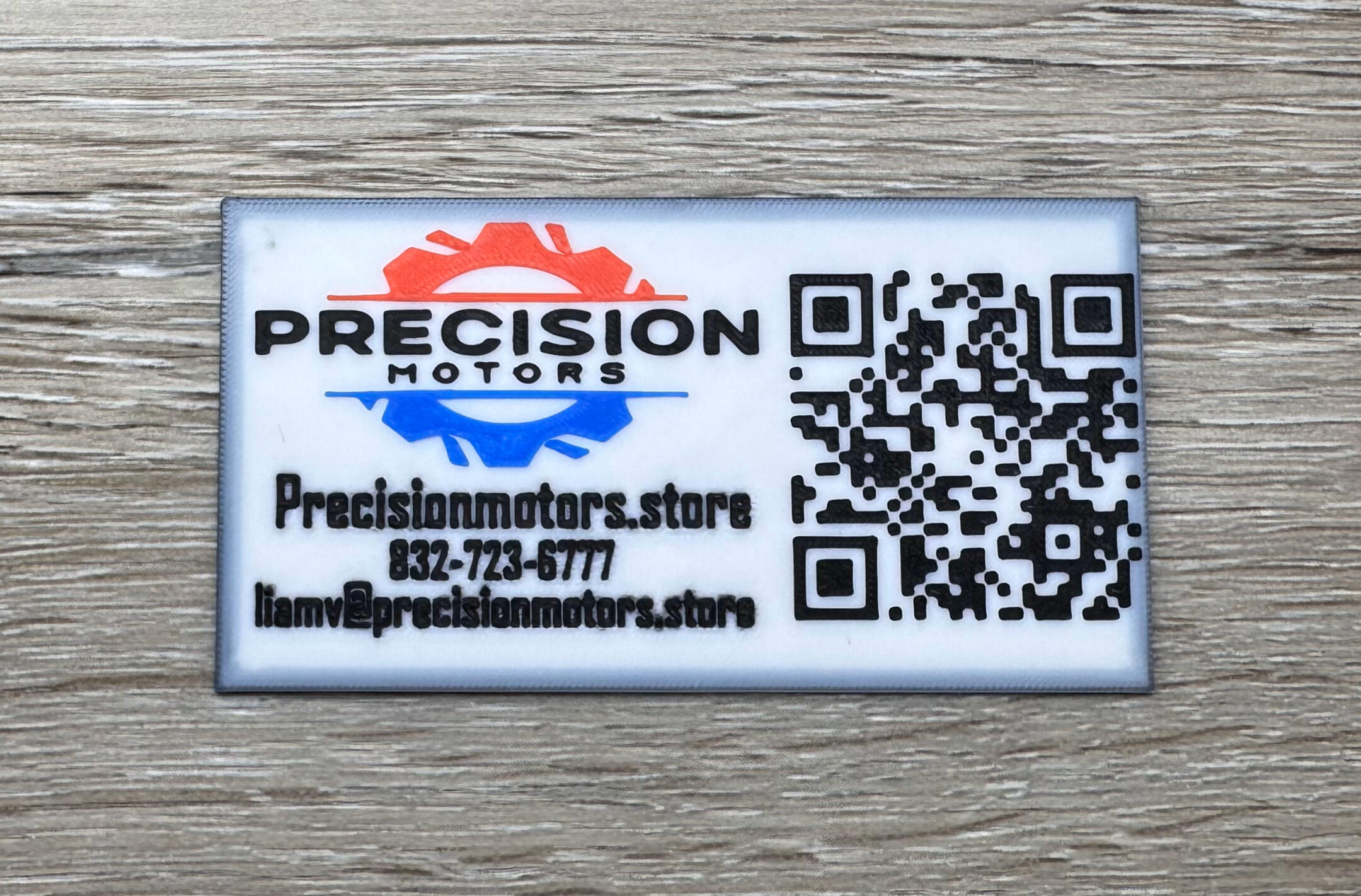 Precision Cards are designed for businesses that make their impact in person — in the shop, on-site, or across the counter. With bold texture, sharp detail, and serious weight, these 3D-printed cards instantly say: you’re the real deal.Whether you're an installer, a contractor, or run a showroom, these cards go beyond contact info — they help your business get remembered, long after the job’s done.
